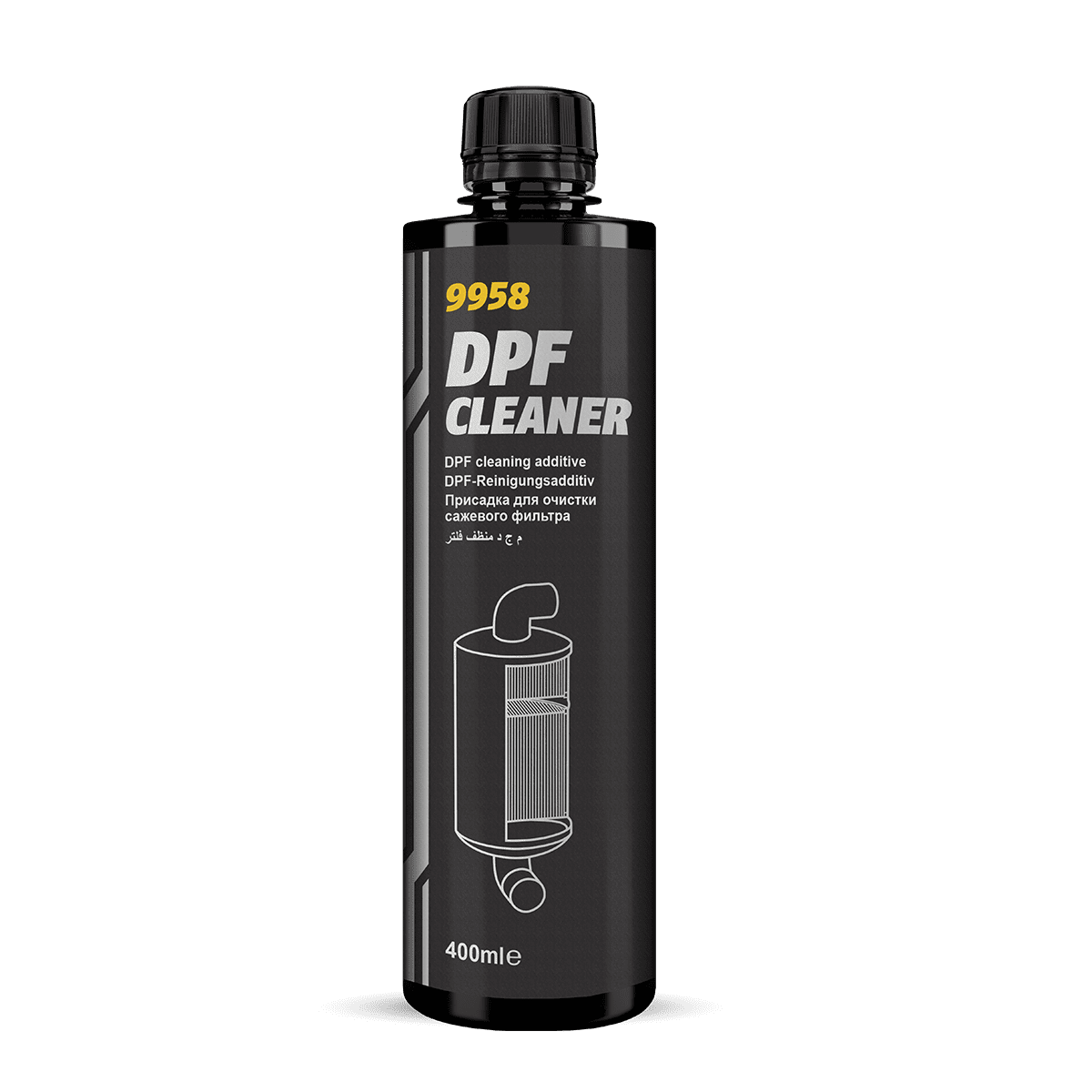 Aditivo para combustible diésel para la limpieza y regeneración de todo tipo de Filtros de Partículas Diésel (DPF) sin necesidad de desmontar y desmontar. Apto para todo tipo de combustible diésel y para todo tipo de motores diésel equipados y no equipados con sistemas automáticos de regeneración DPF. Especialmente recomendado para coches que circulan por ciudad (en atascos) y/o cuando se utiliza combustible de baja calidad.